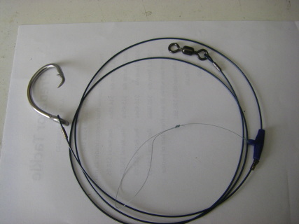 2 x 2metre 445 lb bench swagged sharkrigs with eagleclaw 18/0 2045 circle hooks ,used in conjuntion with a wind on leader eliminates the need for someone taking the trace at the end of the fight