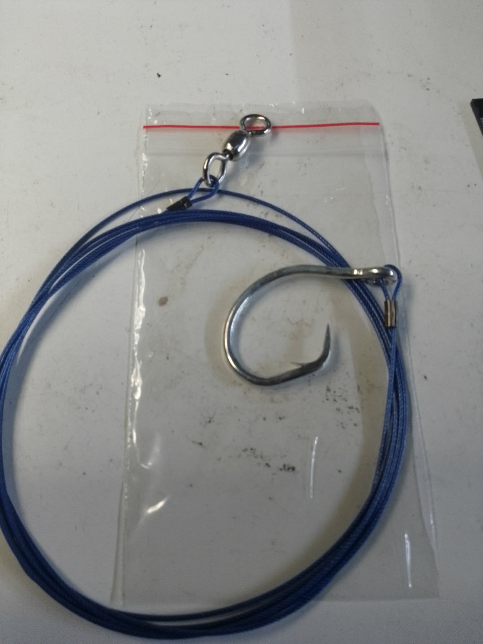 2x bench swaged 98 kg stainlesssteel nylon coated sharkrig with 14/0 highcarbon steel circle hook