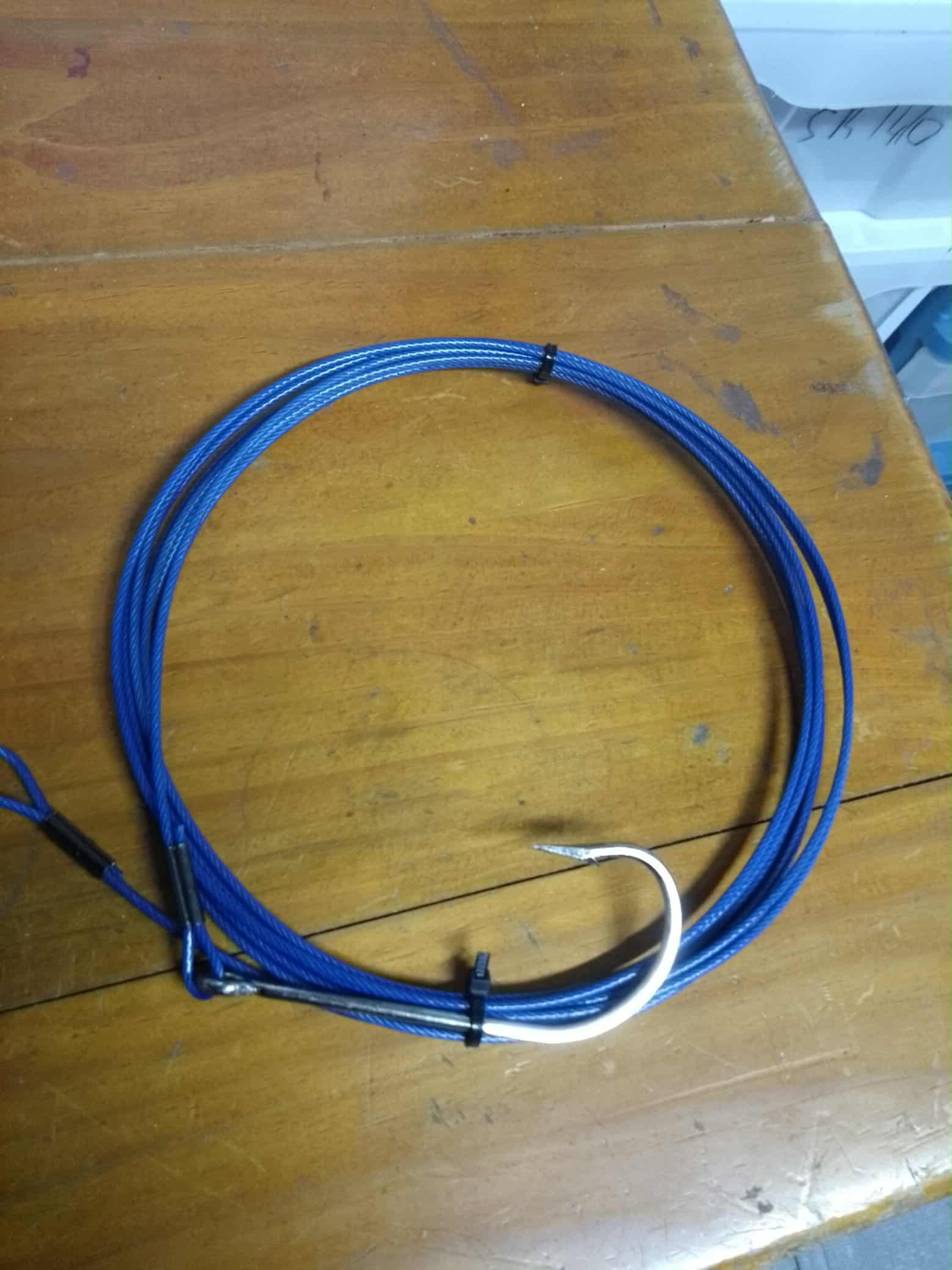 Bench swaged on 4meters of 2mm wire with double copper tournament grade crimps and a 10/0 3407 duratin coated mustard j hook.